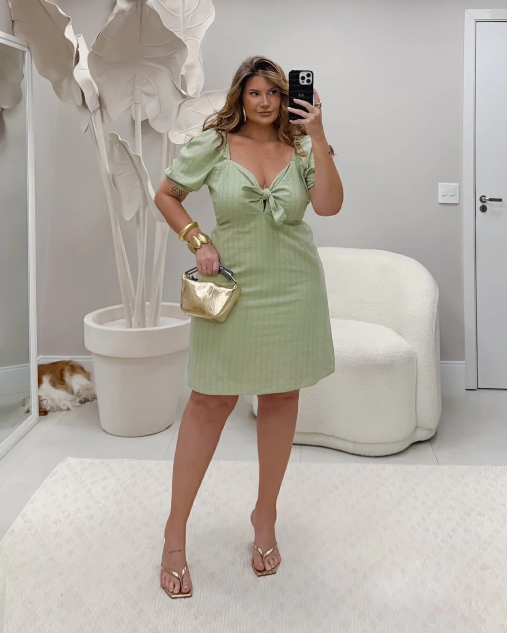Renove seu visual com o Vestido Curto com Laço Frontal! Ideal para quem busca modernidade e charme, o modelo destaca-se pelo laço frontal, agregando feminilidade e estilo. Com caimento leve e tecido confortável, valoriza a silhueta e é perfeito para ocasiões casuais ou especiais. Aposte nesta peça versátil e arrase em qualquer momento!